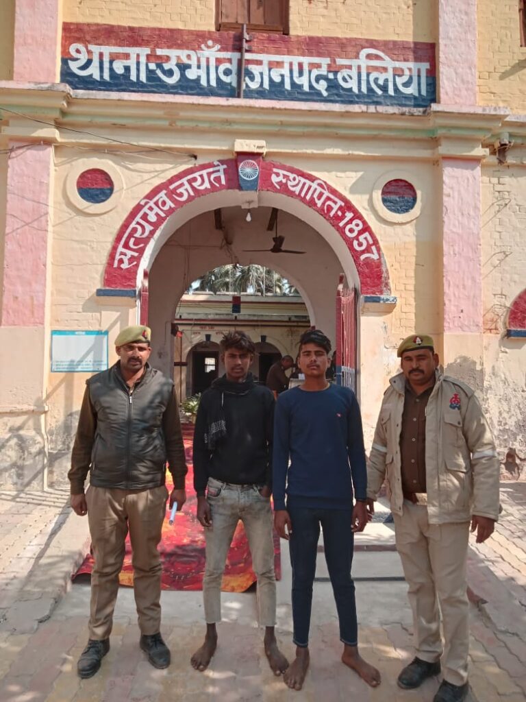 बलिया। मुखबीर द्वारा उभांव पुलिस को सूचना मिली कि क्षेत्र के तेन्दुआ पाही गांव के बगल में फतेहबहादुर यादव के बगीचा में दो व्यक्ति कुछ पशुओं को बेरहमी से बांधे हुए है तथा पशुओं को वाहन पर लादकर सिकन्दरपुर के रास्ते बिहार ले जाने की फिराक में है। वह किसी वाहन का इंतजार कर रहे है। सूचना को गंभीरता से लेते हुए पुलिस ने सात पशुओं को बरामद किया। वहीं दो पशु तस्करों को गिरफ्तार कर संबंधित धाराओं में चालान कर दिया। पूछताछ में आरोपियों ने अपना नाम व पता नसीम नट उर्फ पुतुल पुत्र बुच्चा नट निवासी सुवाह थाना मधुबन जनपद मऊ एवं गोलू नट पुत्र टिपू नट निवासी सुवाह थाना मधुबन जनपद मऊ बताया।