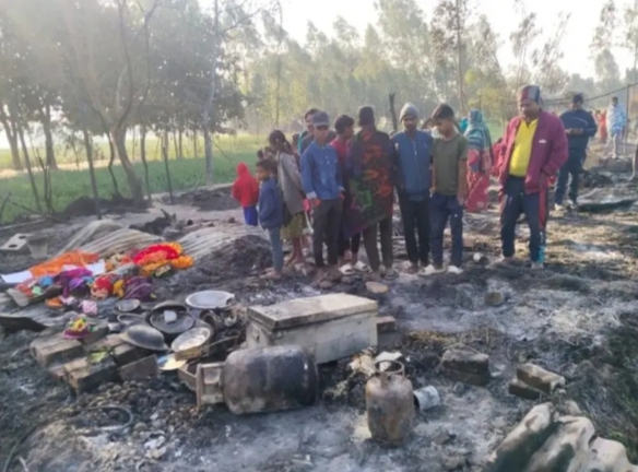 चार परिवारों की एक दर्जन झोपड़ियां व गृहस्थी का सामान राख