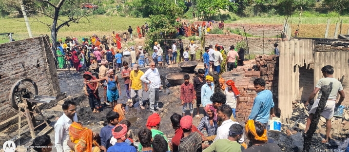 आग से पांच परिवारों की झोपड़ियां राख, दो बकरियां मरी, एक महिला झुलसी