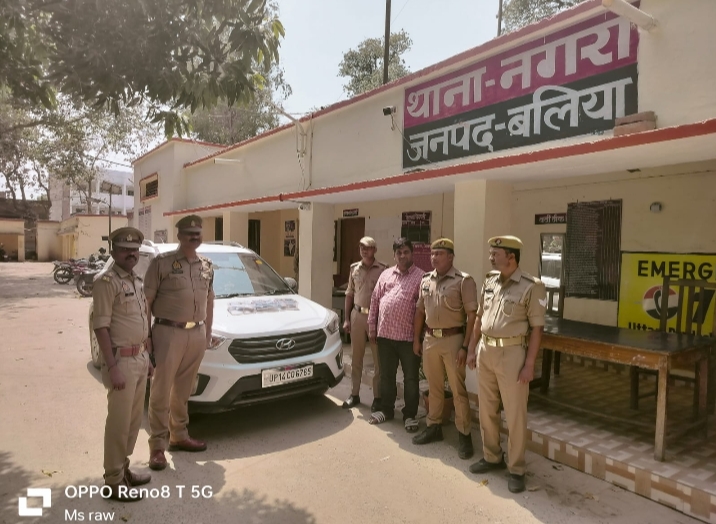 बलिया। नगरा पुलिस ने शुक्रवार को एक फर्जी दारोगा को गौरा मदनपुरा मार्ग पर फायर स्टेशन के पास चेकिंग के दौरान गिरफ्तार किया। पूछताछ में अभियुक्त ने अपना नाम व पता अमित कुमार यादव पुत्र अवधेश यादव निवासी गौरा मदनपुरा, थाना नगरा, बलिया बताया। अभियुक्त के पास से एक ग्लॉक पिस्टल (टॉय गन), अवैध तमंचा, जिंदा कारतूस, खोखा कारतूस, पुलिस का फर्जी पहचान पत्र, छह एटीएम कार्ड और एक सफेद क्रेटा कार बरामद किया गया। वही पुलिस ने अभियुक्त के विरुद्ध धारा 319 (2), 318(4), 336(3), 339, 340(2) बीएनएस व 3/25 आयुध अधिनियम के तहत मुकदमा दर्ज कर छानबीन शुरू कर दिया है।