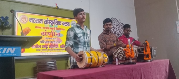 बलिया। सतीश चंद्र महाविद्यालय में नटराज सांस्कृतिक क्लब के तत्वावधान में चल रहे सात दिवसीय संगीत( गायन एवं वादन) कार्यशाला का समापन प्राचार्य प्रो. बैकुंठ नाथ पांडेय की उपस्थिति में किया गया।